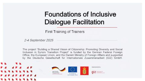 EuroMed Feminist Initiative (EFI) and partner organization, Duderi, are implementing the project “Building a Shared Vision of Citizenship: Promoting Diversity and Social Inclusion in Syria’s Transition Project”. This project seeks to support the emergence of Syria’s peaceful and legitimate political transition by promoting the development of a citizenship charter rooted in justice, gender equality, human rights and social inclusion. The project aims to strengthen the capacity of Syrian civil society actors to lead structured inclusive, locally led social dialogues and ensure that the outcomes of these community-based dialogues are connected to broader political processes and policy discussions. The project involves a three-phase capacity building program for dialogue facilitation and policy engagement. The objective is to strengthen the facilitation and policy engagement capacities of Syrian experts, members of Duderi’s Expert Body, so they can support inclusive community dialogues and contribute strategically to national discussions with ministries and transitional authorities. Held in Athens from 2 to 4 September 2025, the first stage, dedicated to “Foundations of Inclusive Dialogue Facilitation”, marked a key step in building the participants’ capacity to facilitate and moderate community dialogues in Syria. It focused on developing practical skills for guiding dialogue in community settings, such as active listening, managing group dynamics, and inclusive communication. Participants were equipped with both thematic knowledge and facilitation skills to foster inclusive, participatory, and locally anchored dialogue processes. The project “Building a Shared Vision of Citizenship: Promoting Diversity and Social Inclusion in Syria’s Transition Project” is funded by the German Federal Foreign Office, the European Union, and the Danish Ministry of Foreign Affairs and supported by the Deutsche Gesellschaft für Internationale Zusammenarbeit (GIZ) GmbH.