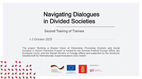 EuroMed Feminist Initiative (EFI) and partner organization, Duderi, are implementing the project “Building a Shared Vision of Citizenship: Promoting Diversity and Social Inclusion in Syria’s Transition Project”. This project seeks to support the emergence of Syria’s peaceful and legitimate political transition by promoting the development of a citizenship charter rooted in justice, gender equality, human rights and social inclusion. The project aims to strengthen the capacity of Syrian civil society actors to lead structured inclusive, locally led social dialogues and ensure that the outcomes of these community-based dialogues are connected to broader political processes and policy discussions. The project involves a three-phase capacity building program for dialogue facilitation and policy engagement. The second training on “Navigating Dialogue in Divided Societies”, held in Rome from 1 to 3 October 2025, built on the foundations established during the introductory training. It marked a key step in strengthening the participants’ analytical capacities for dialogue in politically sensitive contexts and their ability to design dialogue processes that are both inclusive and results oriented. The training focused on equipping participants with basic techniques to translate complex discussions into actionable insights. It aimed to deepen participants’ capacity to handle complex dialogue processes, with a focus on consensus-building tools, epistemic framing, and structured knowledge management. The project “Building a Shared Vision of Citizenship: Promoting Diversity and Social Inclusion in Syria’s Transition Project” is funded by the German Federal Foreign Office, the European Union, and the Danish Ministry of Foreign Affairs and supported by the Deutsche Gesellschaft für Internationale Zusammenarbeit (GIZ) GmbH.